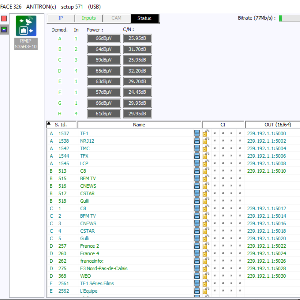 DTVR: Ulaz: 1x DVB-T/T2/C-8xMUX >> Izlaz: IP 1Gb/s – 64 services