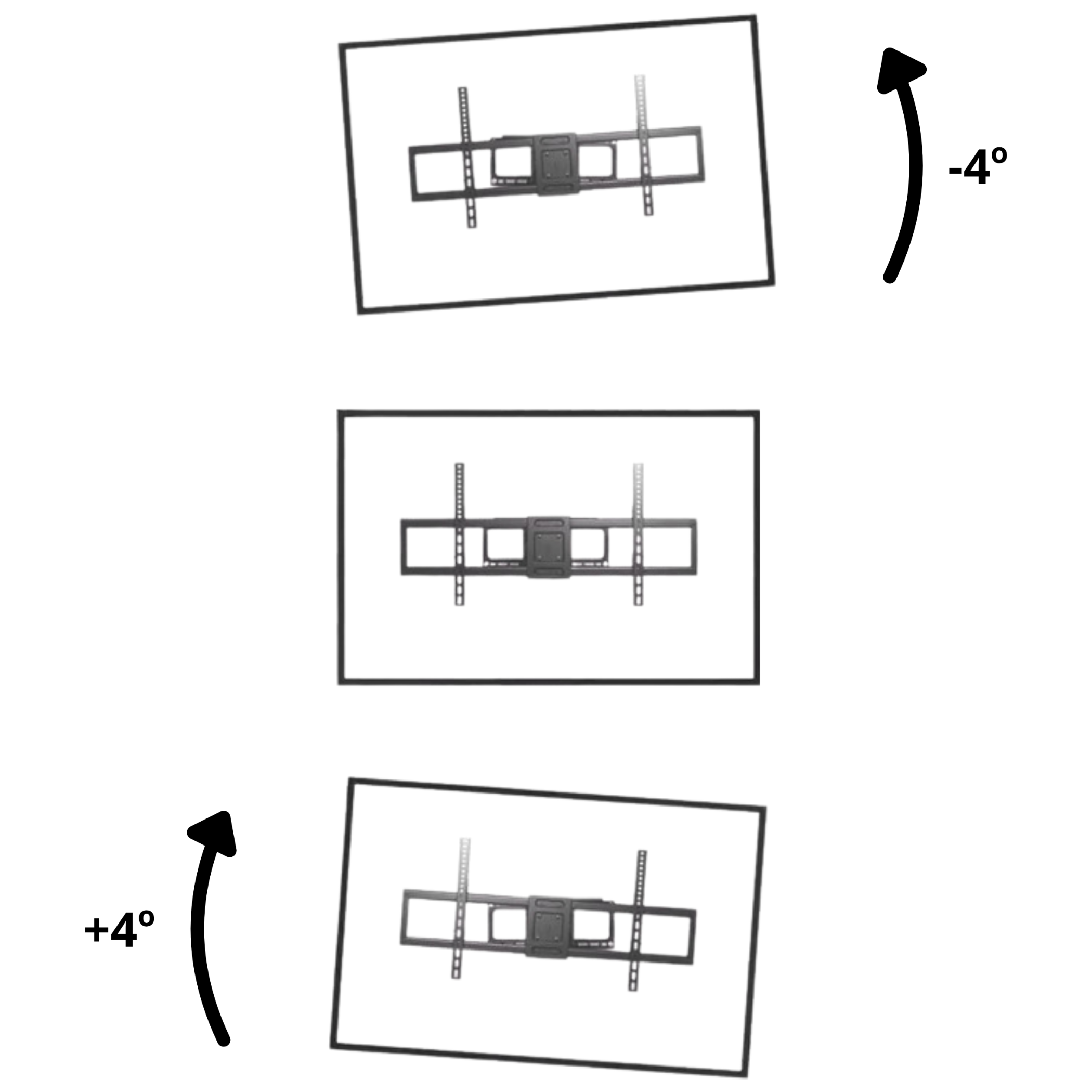 Prilagodljivost i fleksibilnost. S nagibom zaslona (+4°/-10°), zakretanjem do 120° i horizontalnim podešavanjem (+4°/-4°), nosač vam omogućuje savršeno prilagođavanje kuta gledanja rasporedu vaše prostorije.